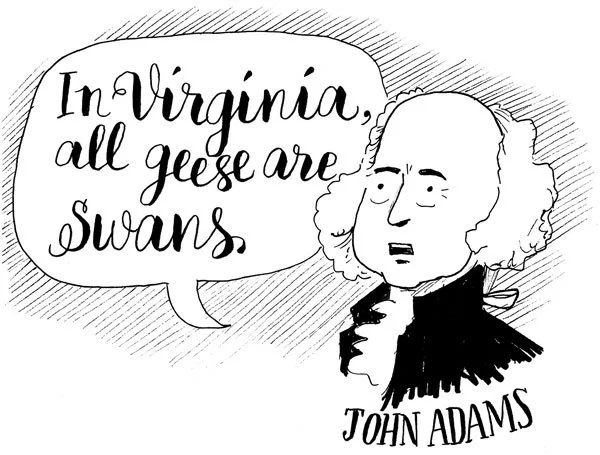 I wrapped up the day with more presidents. I swear I was planning to include this slide in my presentation before I found out what my new friend Heather Cole was presenting on this topic. In any case, she dug farther into the eight presidents born in Virginia (where John Adams said “all geese are swans”).