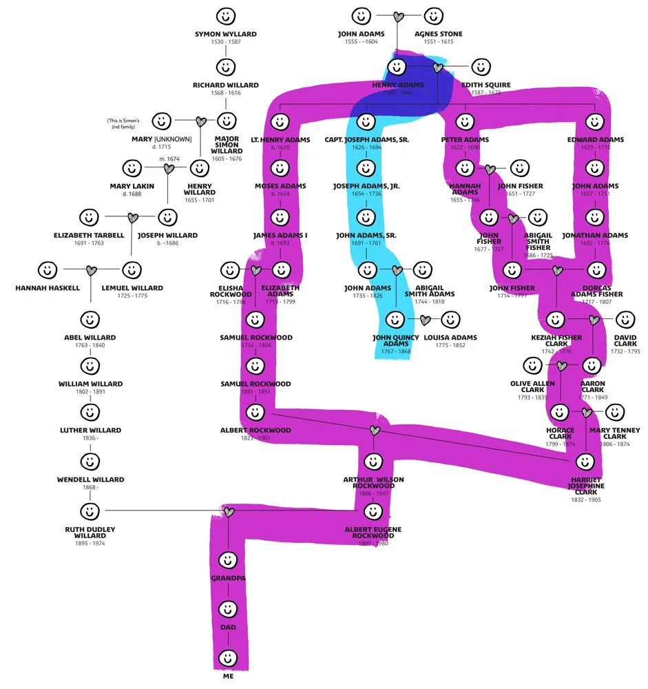 🤯Friends, this is a different Adams than the original Adams (Elizabeth) connecting me to Henry Adams and Presidents Adams. If I’m being truthful, I’ve noticed him previously but having discovered the other Adams (Elizabeth) goes all the way up to THEE Adams ancestors… I kinda forgot about him. What are the odds he’s also important, presidentially speaking?