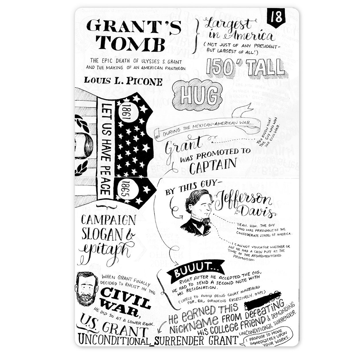 Doodles and facts in this post are largely from Grant's Tomb: The Epic Death of Ulysses S. Grant and the Making of an American Pantheon by Louis L. Picone. It details the drama surrounding the largest tomb in America. That’s right. Of all of the tombs in America. The largest. Nutty. And super-fascinating.