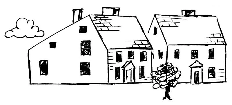 John Adams was born in the house on the right; John Quincy Adams in the house on the left.