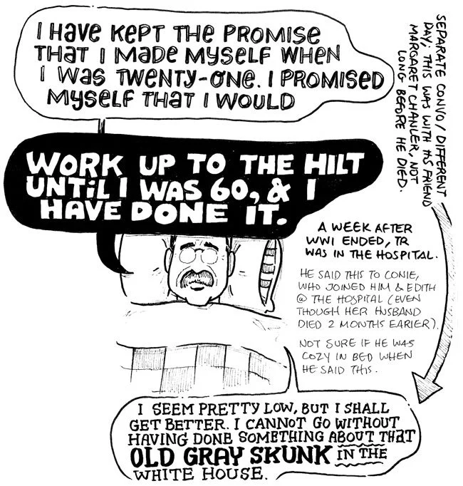 In the words of WIlson’s Vice President Thomas Marshall: “death had to take him sleeping, for if Roosevelt were awake there would have been a fight.”
