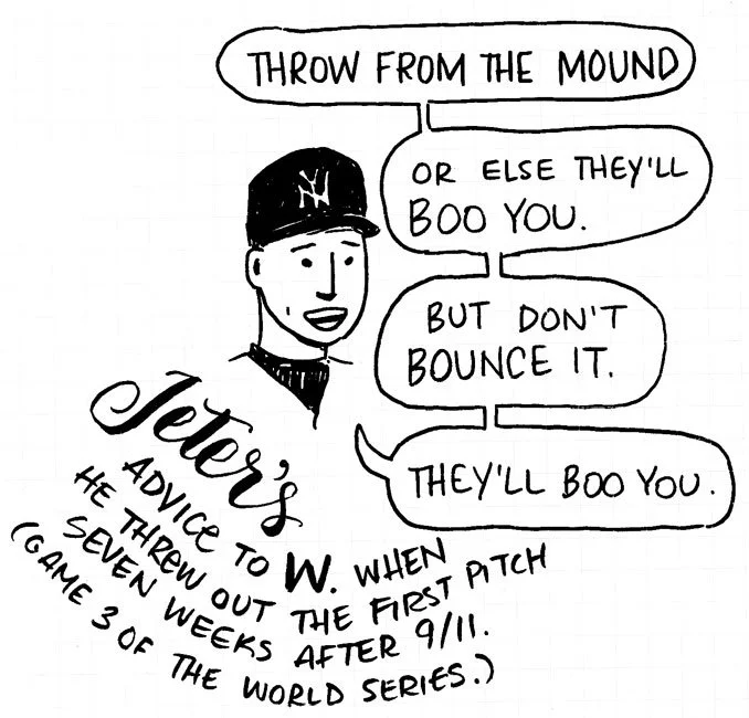 When George W. Bush threw out the first pitch after 9/11 (in game three of the World Series), Derek Jeter had some advice for him: