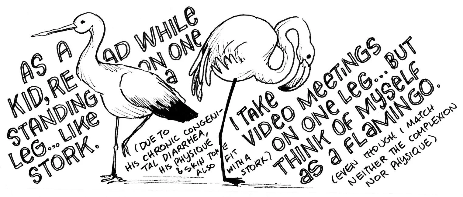 I felt a little connected to him after learning this because I often work while standing on one leg. Like a flamingo.