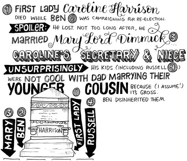 PS I recently finished typing up all 14 of my presidential sketchbooks which, in theory, will help me find doodles I’m looking for. I left myself a note (“#4: thanks, America, for … measles typhoid smallpox tb syphilis, mumps and alcoholism”) in the draft for this post. This should mean a related doodle is in sketchbook #4, but I can’t find it and it’s maddening. Leaving this maddening note here in the hopes that one day I can crack the code and find the doodle.