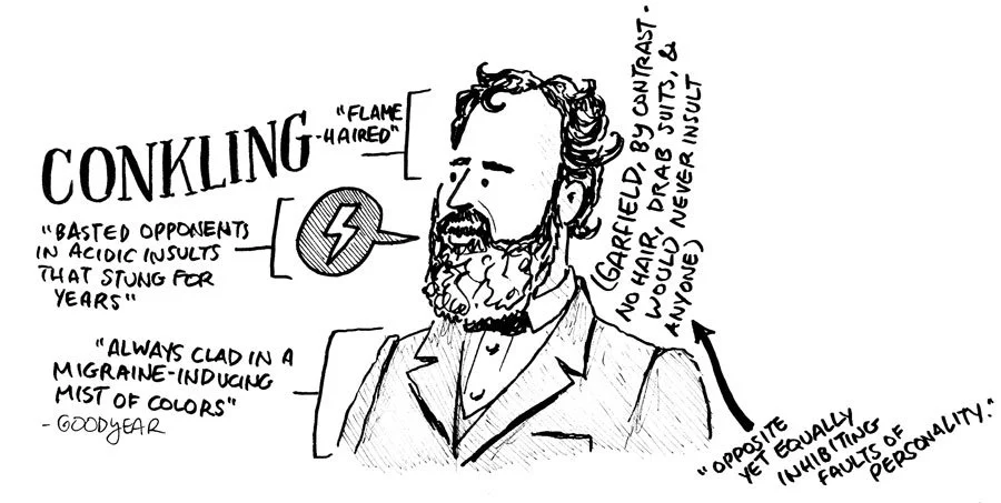 Garfield drew a Venn diagram, showing that Conkling was an “exceedingly petulant spoiled child” and also a “very brilliant man.” JK. I drew the diagram, but he did say those things.