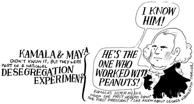 When she was younger, Kamala Harris and her sister knew all about George Washington Carver. When they first learned about George Washington in school, her sister said “I know him! He’s the one who worked with peanuts!”